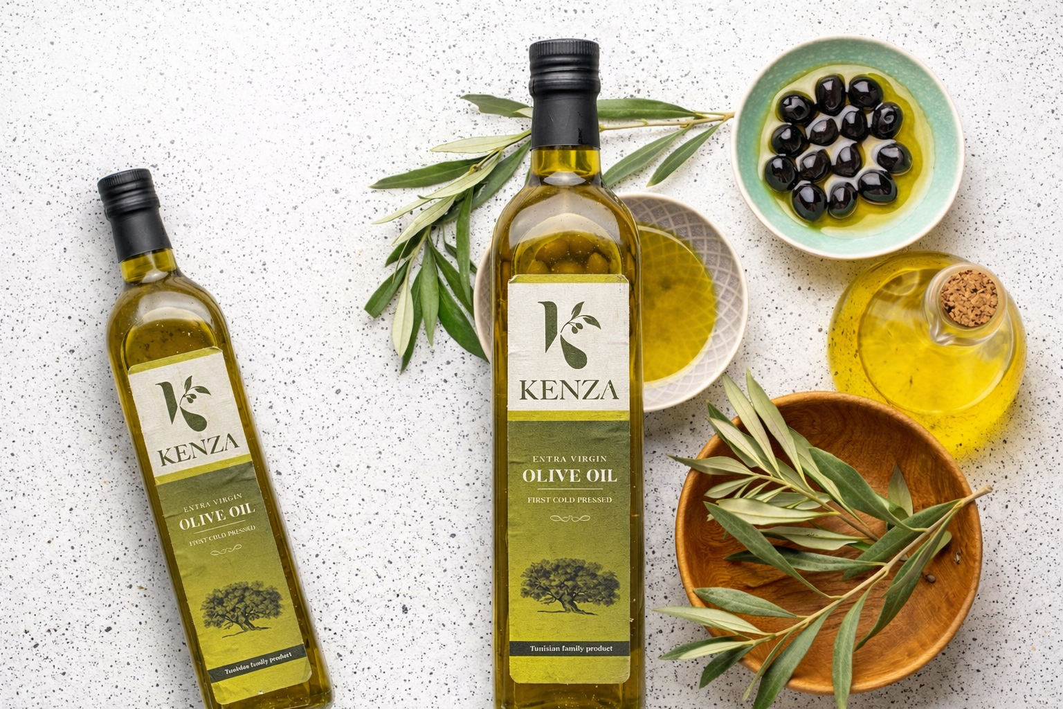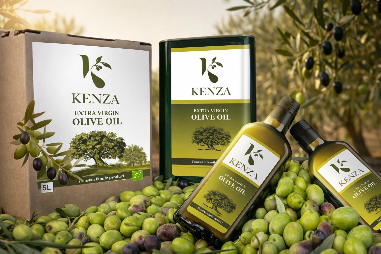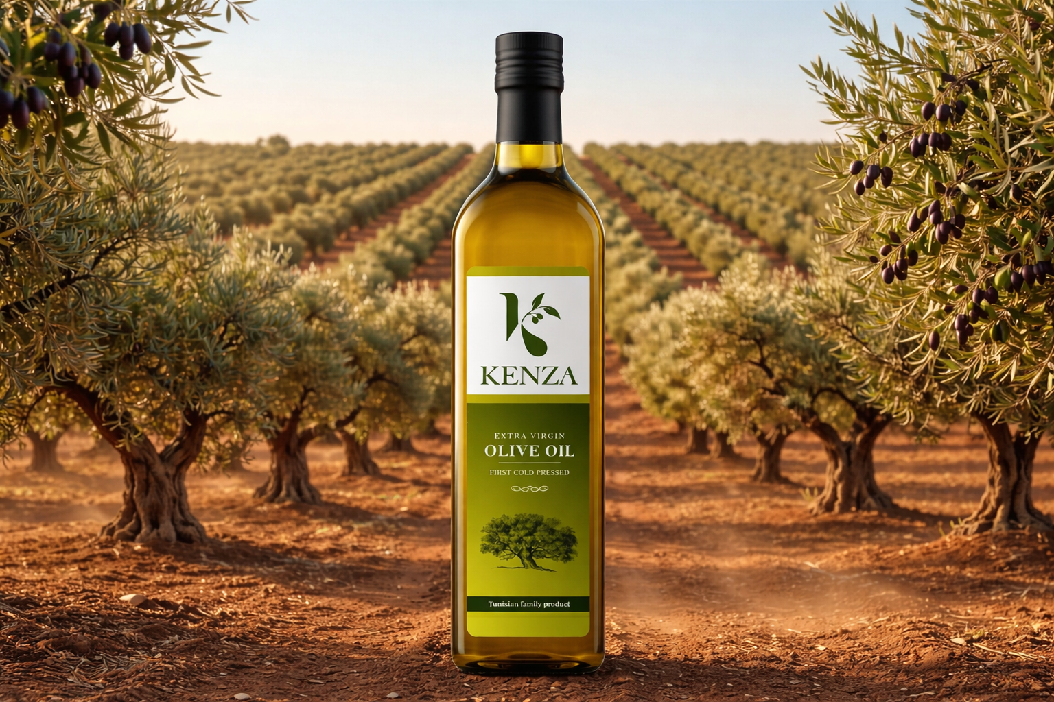 Produite au cœur de la Tunisie, Kenza Olive Oil est issue d’un domaine familial de plus de 200 hectares. Nos 30 000 oliviers, cultivés dans un environnement naturel préservé, donnent naissance à une huile d’olive authentique, riche en caractère.